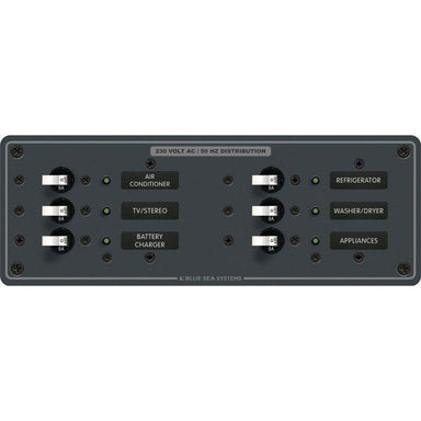 AC Main + 8 Positions (European)White Switches(1) 16A Double Pole Circuit Breaker (5) 8A Single Pole Circuit Breakers (1) 8246 AC Analog Micro Amm...