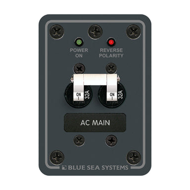 AC Main (European)(1) 32A Double Pole Circuit Breaker Installed Red reverse polarity indicating LED Safety ground screw on panel back Combines...