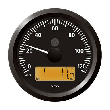 3-3/8" (85 mm) ViewLine Speedometer - 0 to 120 KMH - 12/24V - Black Dial & Triangular BezelThe ViewLine Speedometer with LCD and push button i...
