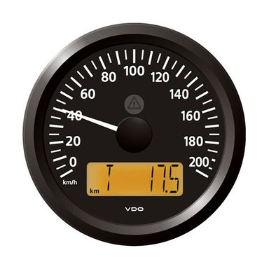 3-3/8" (85 mm) ViewLine Speedometer - 0 to 200 KMH - 12/24V - Black Dial & Triangular BezelThe ViewLine Speedometer with LCD and push button i...