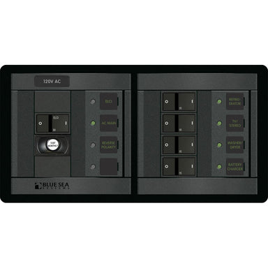 120 Volt AC Main + 2 Positions w/AC VoltmeterFeatures: All circuit label positions are backlit "ON" indicating LEDs installed in all circuit posi...