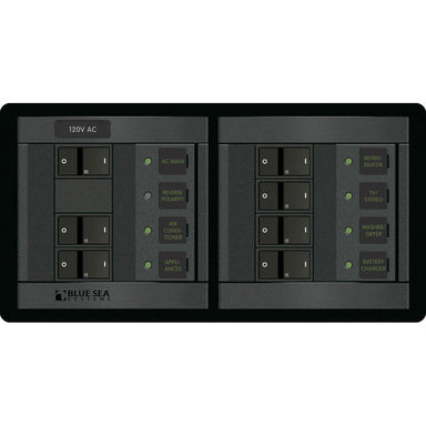 120 Volt AC 8 PositionFeatures: All circuit label positions are backlit "ON" indicating LEDs installed in all circuit positions Includes 4206-S...