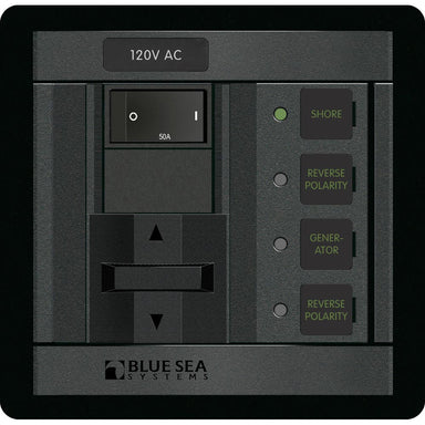 120 Volt AC 2 Sources - 50AFeatures: Backlight label positions Red "Reverse Polarity" LEDs installed Green "Power Available" LEDs installed Loc...