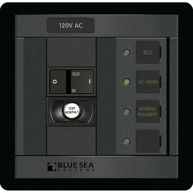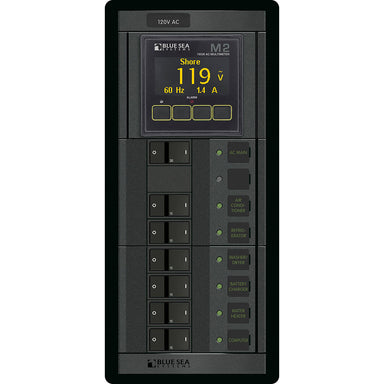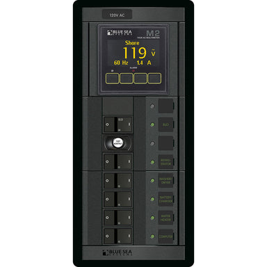 1504 - 360 Panel - ELCI + 5 Position 120V AC Flat Rocker with M2 AC MultimeterPart of the Blue Sea Systems Battery Management Panels. This one st...