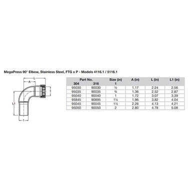 Propress 1/2" - 90° Copper Elbow - Street/Press Connection - Smart Connect TechnologyFeatures: For use with ASTM B88 and B75 tubing Copper Press c...