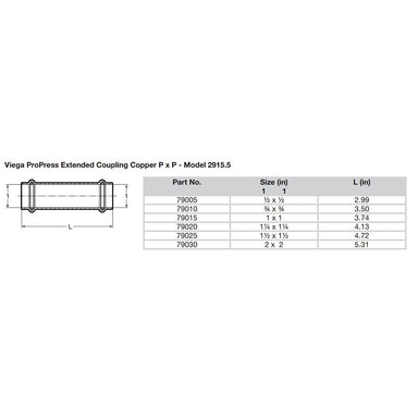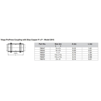 ProPress 1" Copper Coupling without Stop - Double Press Connection - Smart Connect TechnologyFeatures: For use with ASTM B88 tubing Copper Press c...