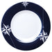 The NORTHWIND dinner plate has a simple yet elegant nautical style. The unbreakable melamine dishes in this tableware set have a decorated border, like the other accessories in the collection, in navy blue and white tones with a compass rose.