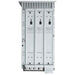The system consists of a wall-mount case that serves as a connection point to AC input and battery output (3 banks) and contains three front-facing power bays, each accommodating a 22.5-amp charger module that slides and locks in place, creating a 24V, 67-amp charger.